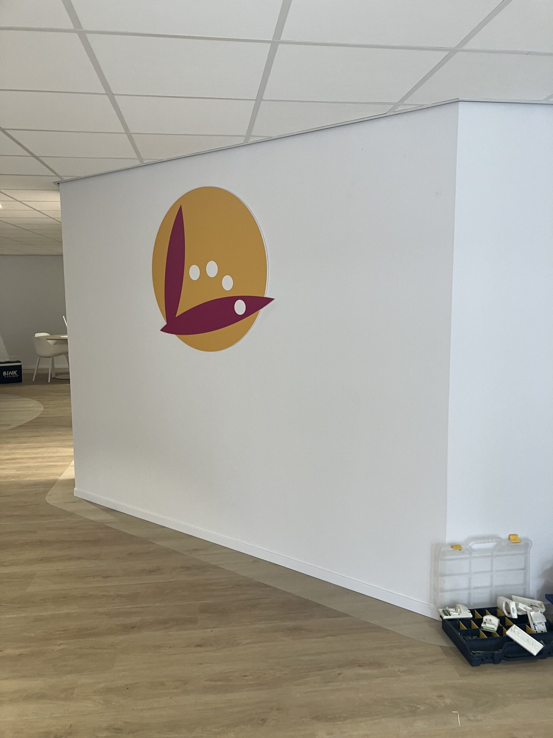 Ook voorzagen we het opgefrizzte kantoor van diverse 2d logo’s.