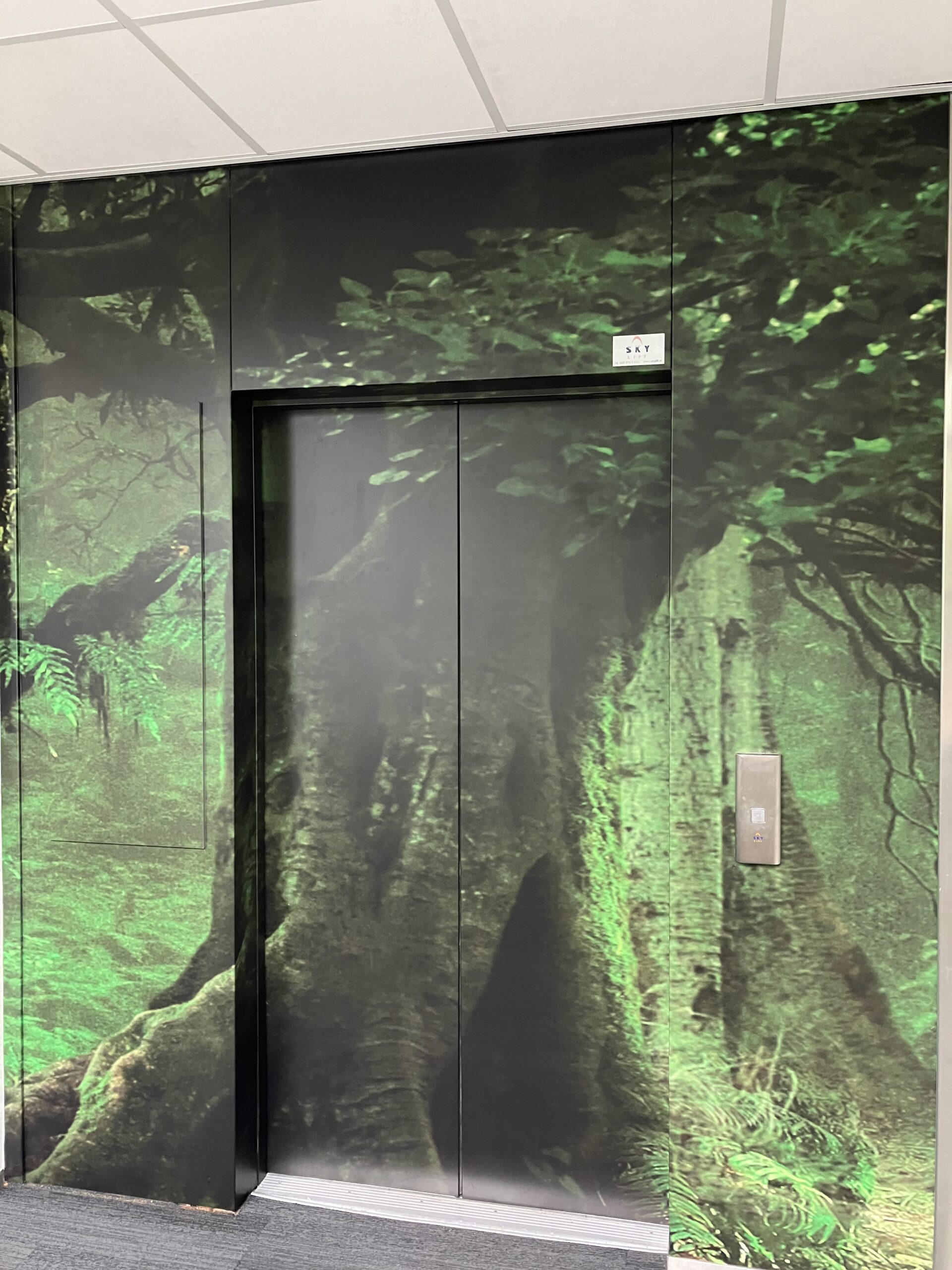 We voorzagen wanden van naadloos behang en maakten er spanwanden op, wrapten we de keukens in houtlook, beplakten de glaswanden met stoere bosprints en ook de lift moest er aan geloven….
